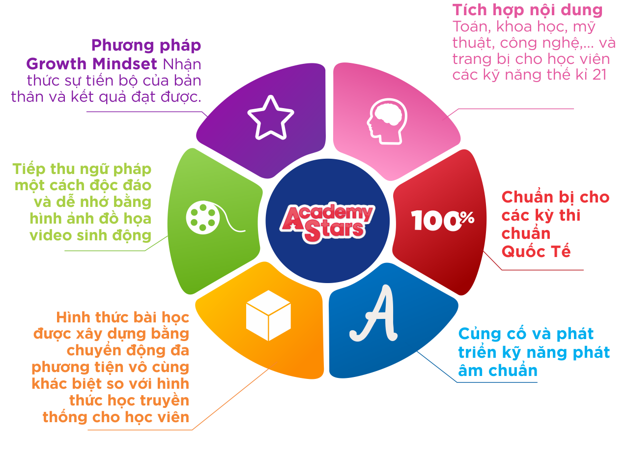 (*) Chuẩn đầu ra các kỳ thi quốc tế Cambridge: Nội dung bài học và bộ câu hỏi đánh giá năng lực học sinh định kỳ, bám sát khung tiêu chuẩn Cambridge, giúp giáo viên và phụ huynh theo dõi tiến bộ của học viên, vừa là tiền đề giúp học viên cọ sát và đạt kết quả cao trong những bài kiểm tra Cambridge YLE như: Starters, Movers, Flyers.